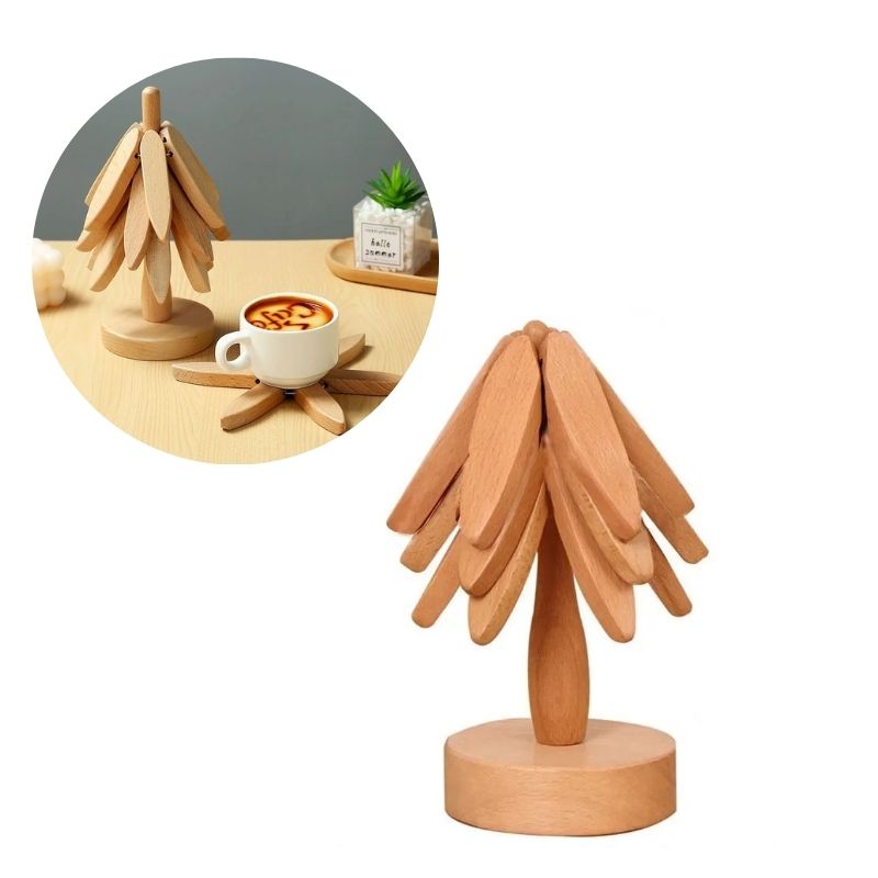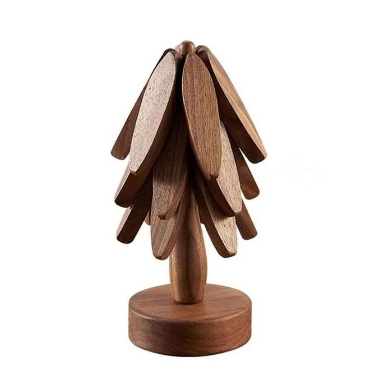 Porta Xícara de Madeira Natural A Cozinha de Oz — Conjunto Decorativo para Café, Mesa e Cozinha