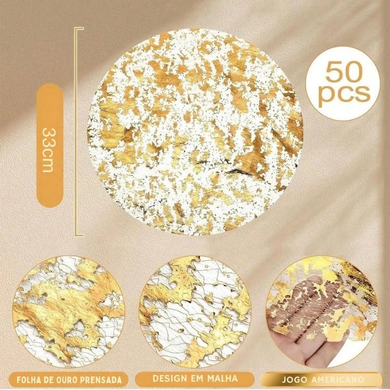 Jogo Americano Dourado ChefHome – Tapete de Mesa Redondo Decorativo 33cm Descartáveis